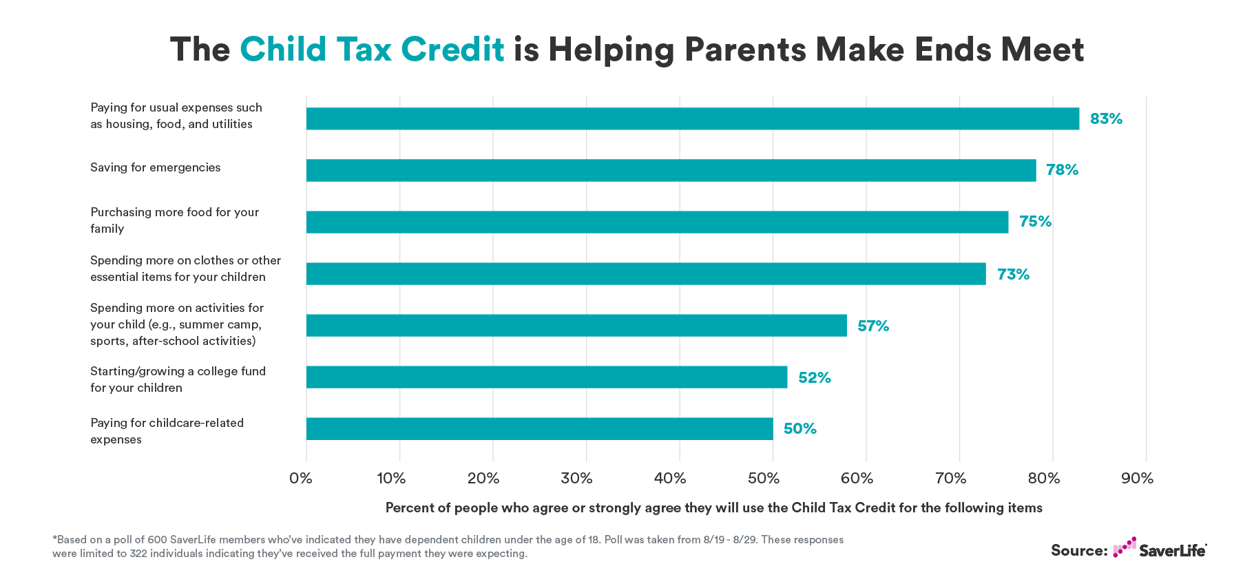 Then came the monthly Child Tax Credit, like a knight in shining armor. While not a huge influx of cash, the Child Tax Credit is keeping members afloat. SaverLife members overwhelmingly reported that they are using this extra money to help make ends meet.