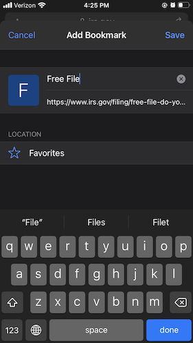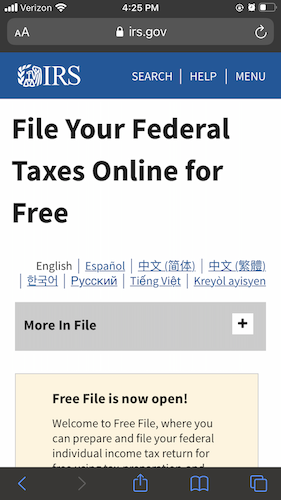 1.Click on the “Go” button under Bookmark Free File and you’ll be led to the IRS site