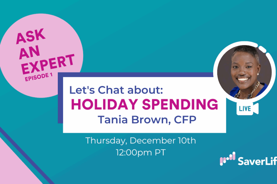 The holiday season is officially upon us and we know how tempting it may be to shop without a set budget in mind. That’s why we’ve teamed up with SaverLife Certified Financial Planner (CFP) Tania Brown to help bring you our first ever “Ask An Expert” Facebook Live on December 10 at 12pm PT.
